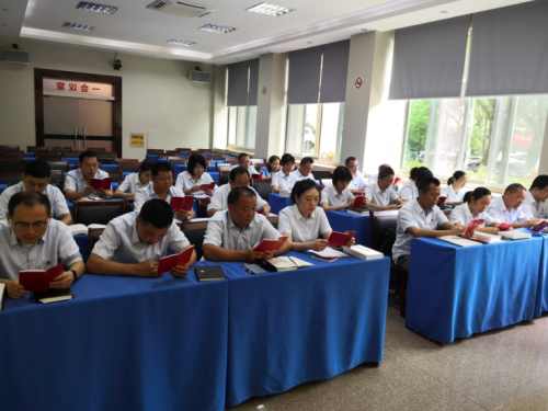 后勤支部為打造悅讀先鋒,鍛造書香支部,組織全體黨員接龍式朗讀《黨章》。